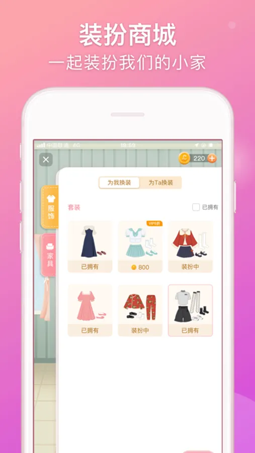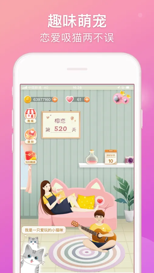 温馨有趣的虚拟元宇宙情侣互动空间,在这里与Ta一起换上情侣装,一起装扮你们的小家,一起养只小宠物,一起呵护你们的爱情~