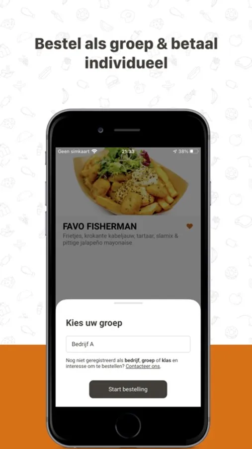 Laat je bedrijf of club registreren als groep! Iedereen bestelt en betaalt individueel & wij zorgen ervoor dat alles samen klaar is op het afgesproken uur.