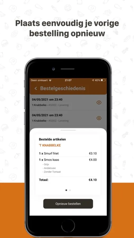 Via de favorieten functie of je bestelgeschiedenis ben je slechts enkele vingerdrukken verwijderd van een nieuwe bestelling. Echt handig!