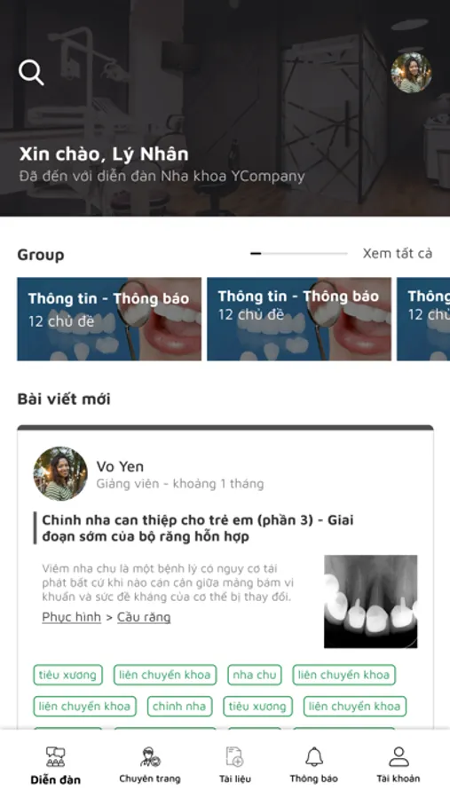 - Trang cá nhân: nơi chỉnh sửa thông tin cá nhân và đăng các bài viết tại Diễn Đàn Nha Khoa Y Company.
