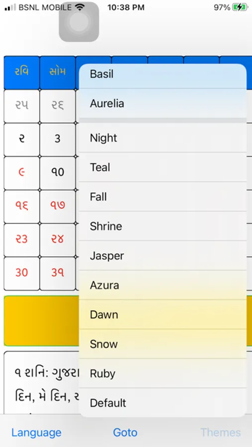The most important feature of this calendar application is that this is completely in Gujarati language. It also supports description of the details in English.