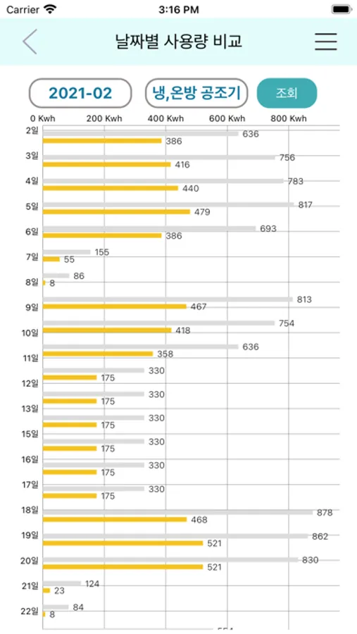 - 전기 사용 이력을 조회하고, 전기 사용 패턴을 파악할 수 있는 사용량 조회 기능 제공