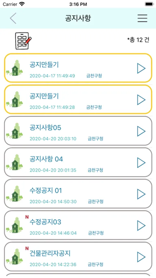 - 공지사항 및 알림 확인