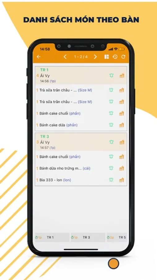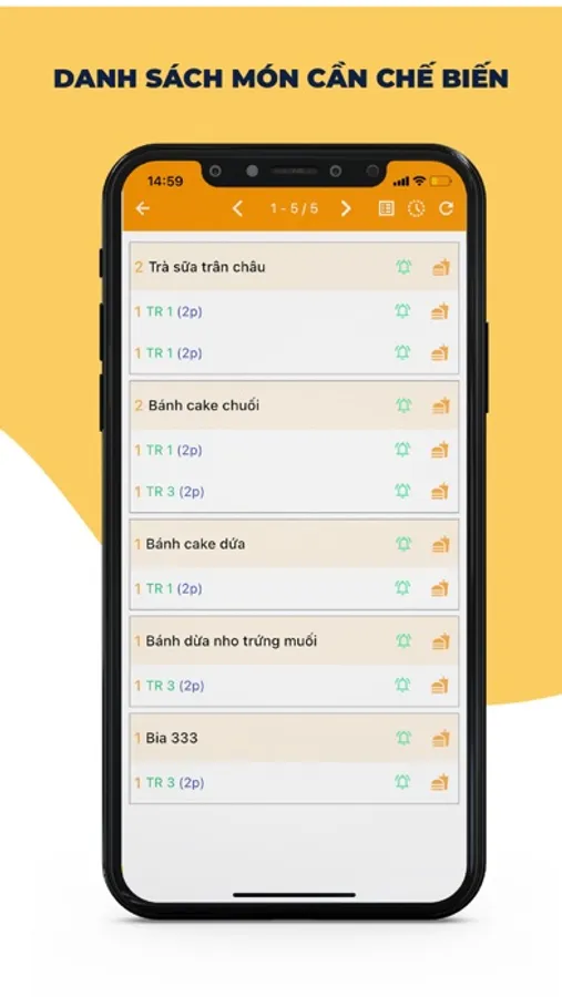 - Tự động cập nhật order từ phục vụ, thu ngân đến bếp, quầy bar tức thời