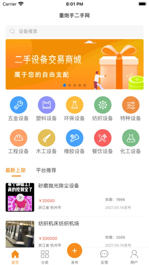 重炮手APP是一个二手设备信息交互平台,拥有各行各业的二手设备信息,包含五金,塑料,化工,纺织,木工,环保,橡胶,餐饮,工程,印刷,餐饮......