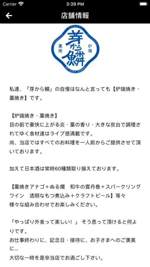 店舗のマップが表示され、地図アプリとも連携しているので、初めてのご来店の時も簡単に見つける事が出来ます。