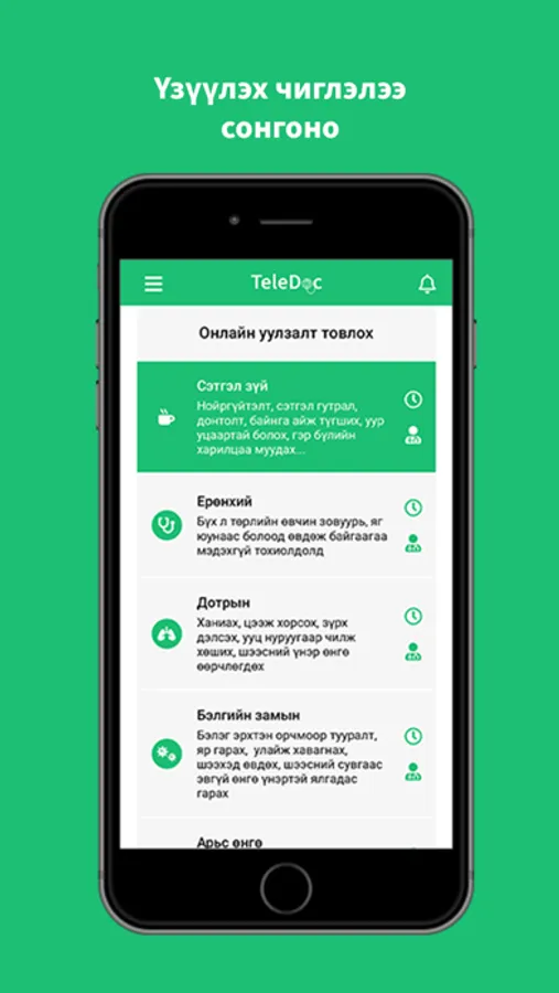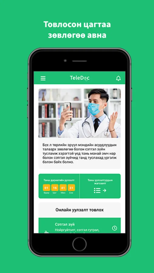 4. Таны товлосон цаг болоход TeleDoc апп-аараа дамжуулан онлайн уулзалт хийн зөвлөгөө авна.