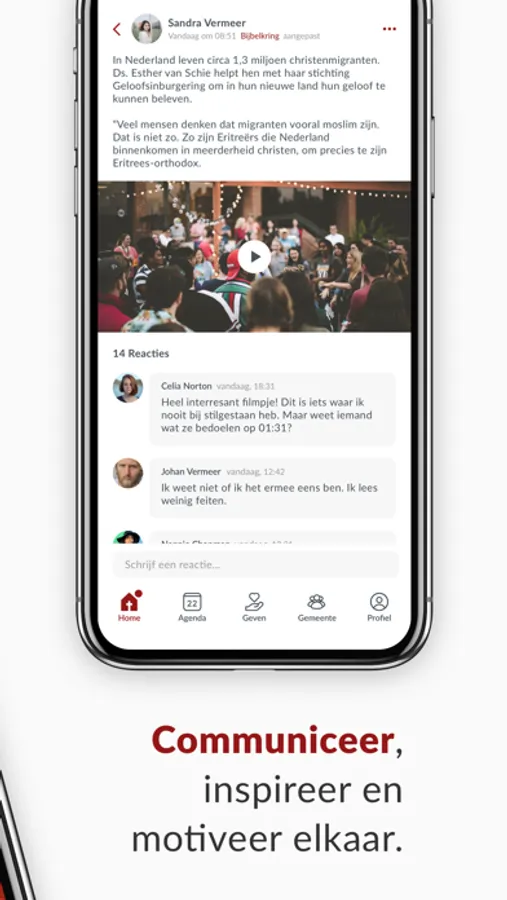 Thanks to our unique group structure, we can communicate better. With the entire community, but also among ourselves. You can add groups yourself and invite people to join. A smart timeline ensures that you see personal and relevant information.