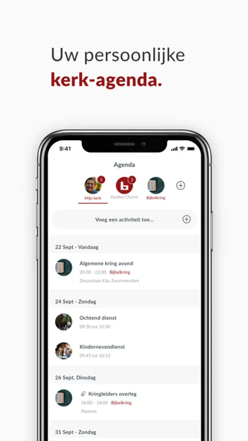 View the calendar for your entire community, but also for specific groups. Thanks to the smart group structure, each user has his own unique church calendar. Then link it to your own personal calendar and don't miss a thing!
