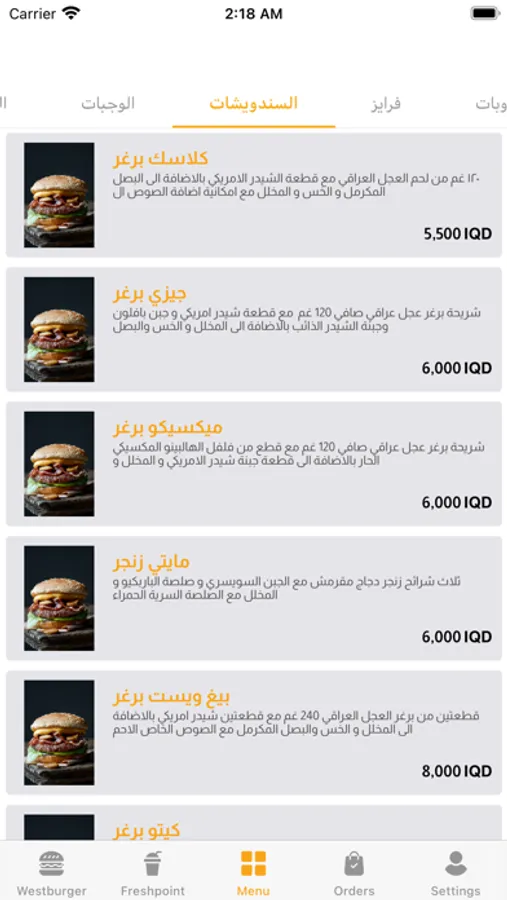 التطبيق الرسمي لسلسلة مطاعم ويست برغر و فريش بوينت.
