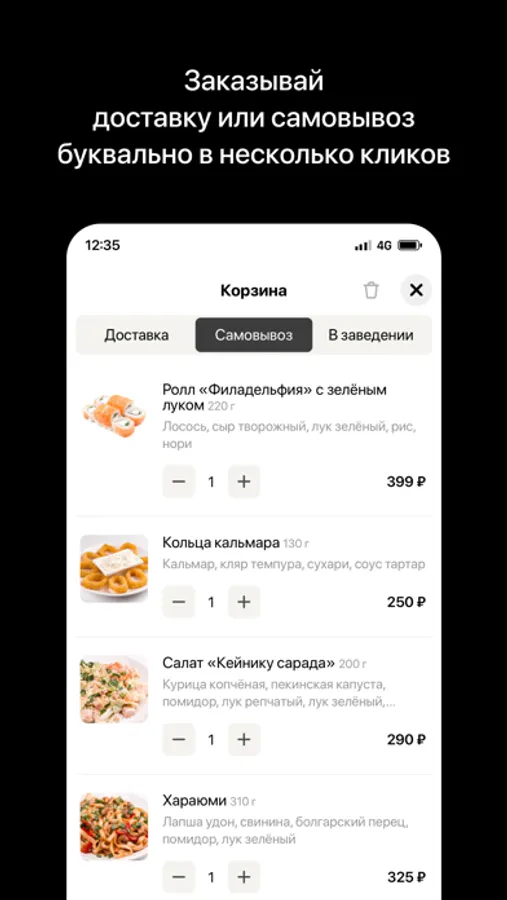 — Быстрый заказ с мгновенным подтверждением через приложение.