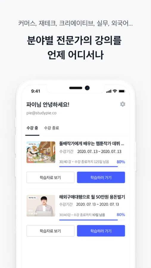 앱으로도 간편하게 구매한 클래스와 스터디, 커뮤니티를 이용해 보세요:D
