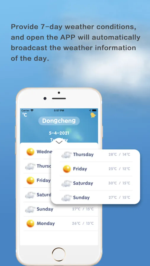 4. Provide voice broadcast, every time you enter the APP, it will directly broadcast the weather conditions of the day and broadcast various suggestions to you, and you can understand the weather of the day without watching it.