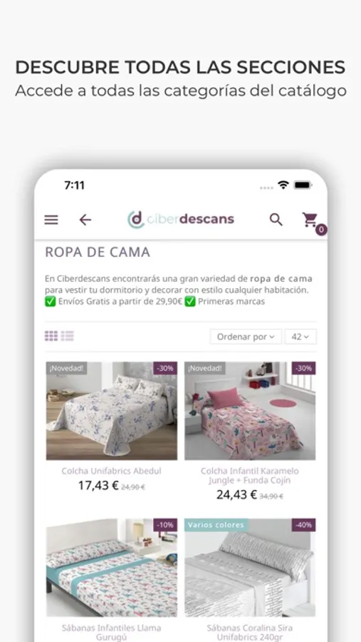 En nuestra APP todas tus compras son más baratas, descárgala y visita el catálogo de ropa de cama más completo. Ponemos a tu disposición todos los estilos, colores y tamaños existentes. Aclaramos tus dudas en menos de 24 horas con una atención personalizada.
