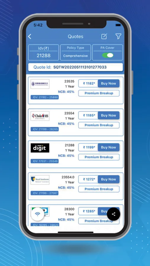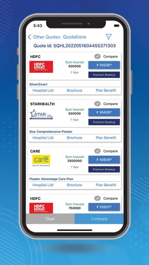 With the Square Insurance app, you can choose from the broadest range of insurance products available in India. In one place, you can manage all your insurance needs, including price comparison, insightful articles, shortlisting, purchasing, and handling.