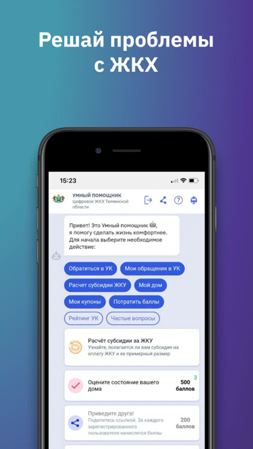 Умный помощник ЖКХ начисляет бонусные баллы за выполнение следующих активных действий:
