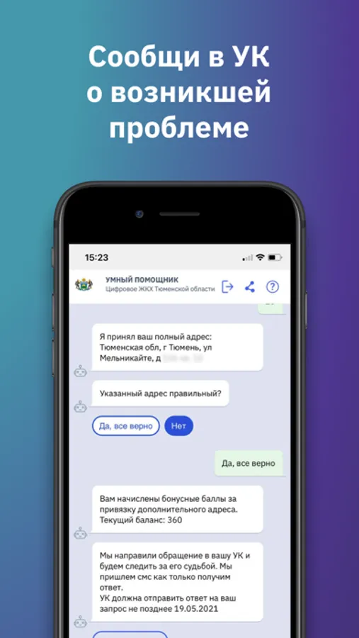 Обращение будет направлено в ту управляющую организацию, которая управляет выбранным домом согласно данным, раскрытым в ГИС ЖКХ. Направляемые через Умный помощник ЖКХ обращения обязательны для ответа со стороны УК.
