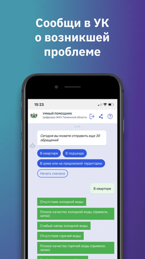 • в несколько кликов сообщить о проблеме в свою УК или ТСЖ, зная только адрес дома;