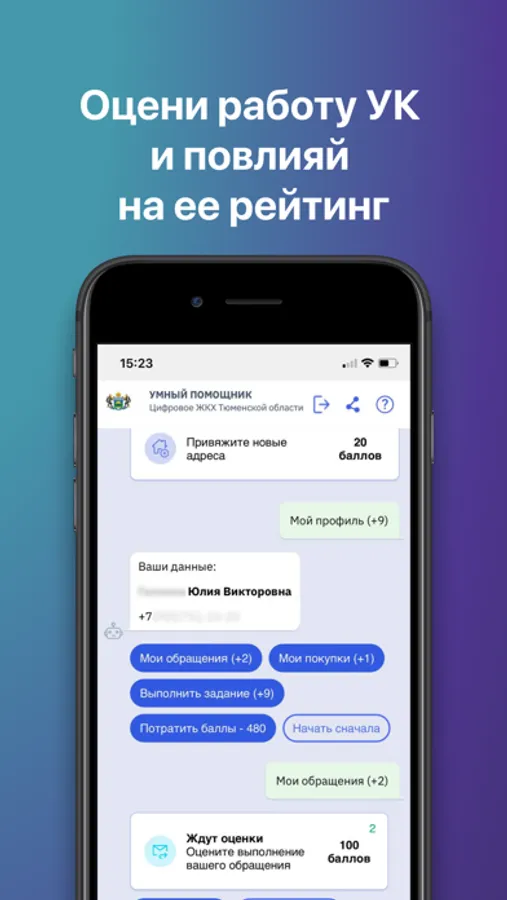 • оценить результат выполнения обращения и внести свой вклад в формирование открытого рейтинга управляющих организаций региона;