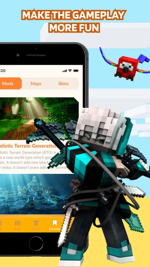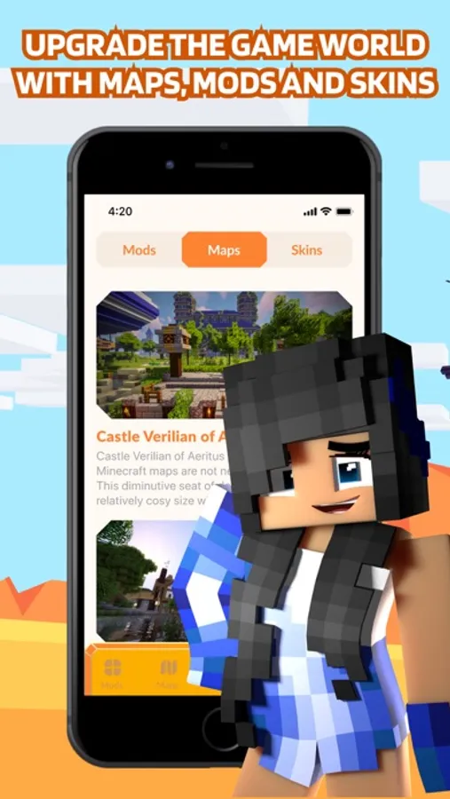 Mods and Maps for Minecraft. will make your adventures more exciting. In this application, every player will find something for themselves!