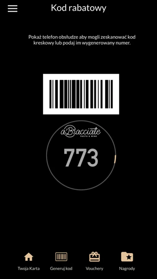 Korzystając z karty a'Bracciate zbierasz punkty, które mogą być wymieniane na nagrody z naszego menu. Dodatkowo otrzymujesz zniżkę na cały asortyment.