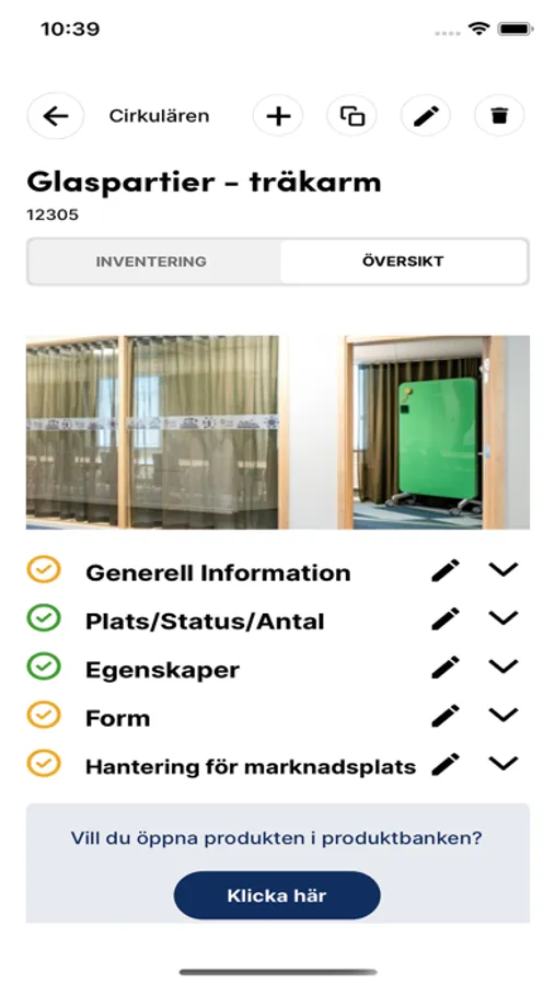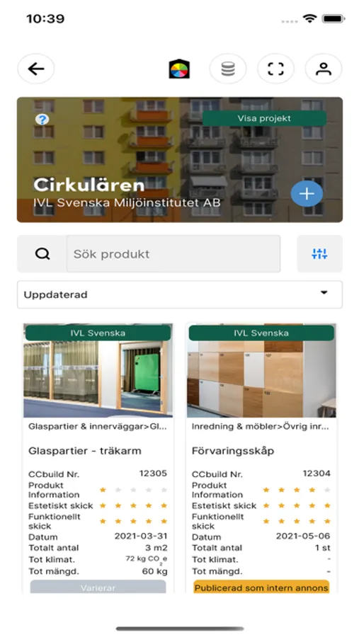 Appen stöder internt och extern återbruk genom synkronisering med CCBuilds produktbank och marknadsplats, se www.ccbuild.se.