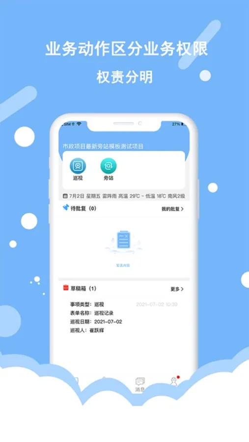 逸监理APP是一款专门为监理工作者设计的项目管理软件。逸监理APP根据监理工作者不同角色按业务动作设计模块,为用户提供编审、会议、指令、验收、抽检、旁站、日志及收发文等多种功能,让用户各司其职的同时实现各个项目参与方协同工作,提高工作效率,基本实现在线作业。欢迎下载!
