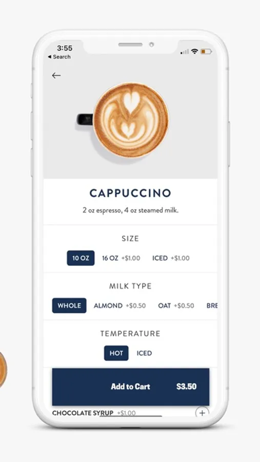 Access our full menu of coffee, tea, espresso and speciality drinks.