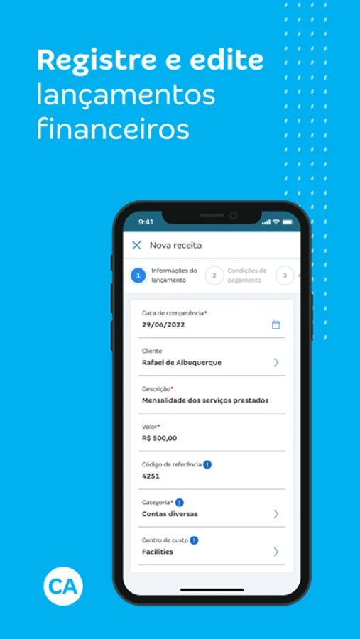 - Financeiro: gerencie contas a pagar e receber pelo aplicativo;
