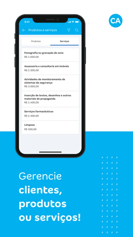 - Cadastre, edite e exclua clientes, produtos e serviços;
