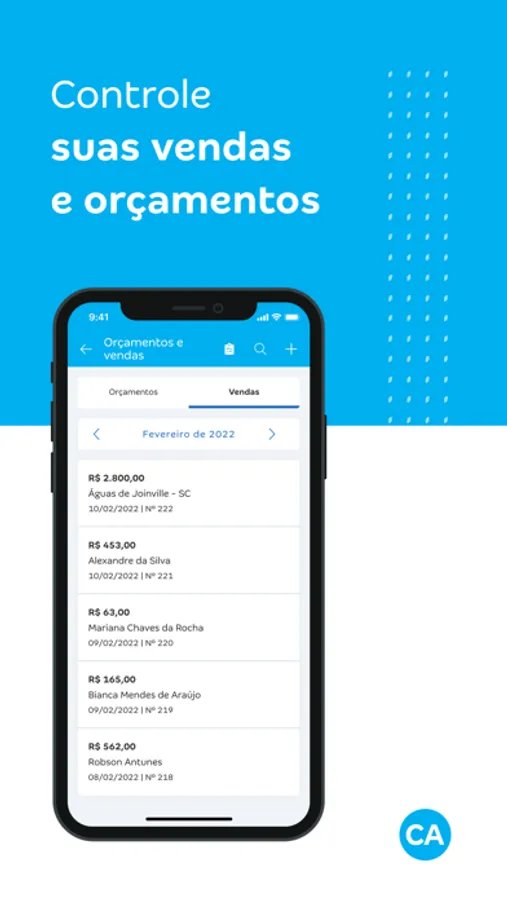 - Crie e gerencie novos orçamentos e vendas dentro do aplicativo;