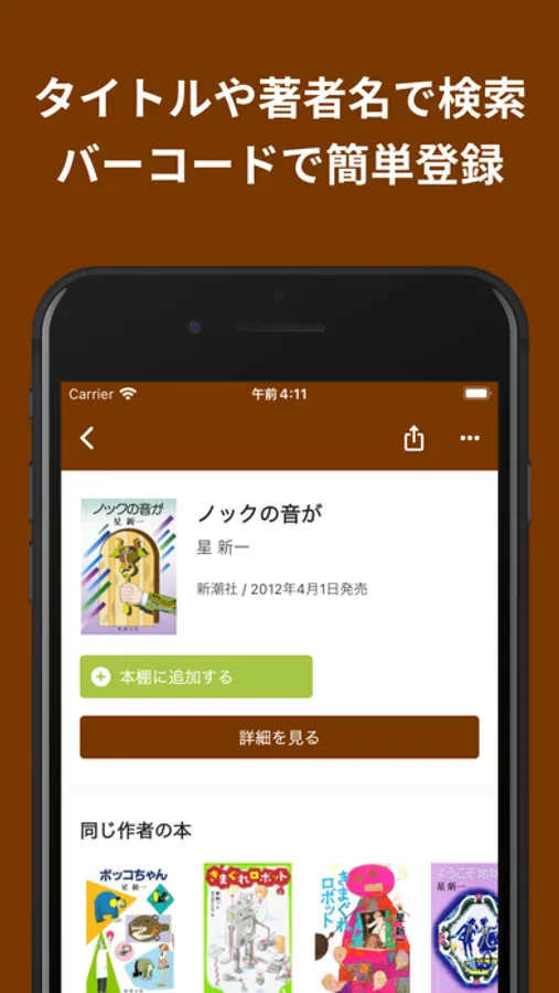 ・本はタイトルや著者名で検索したり、必要な情報を入力して簡単に登録できます。