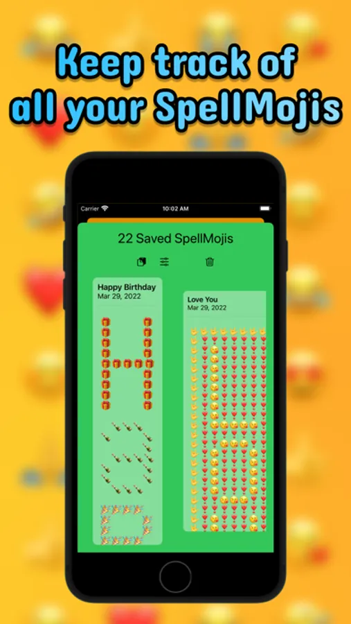 Enter a message (like "Hey"), some emojis (like the wave or kiss emojis) and the app will spell your message using your emojis!