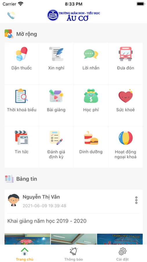 Ngoài ra, Âu Cơ school còn nhiều tiện ích hình ảnh, thông báo..v..v.. giúp cho phụ huynh nắm rõ tình hình học tập cũng như mọi thông tin liên quan đến con mình.