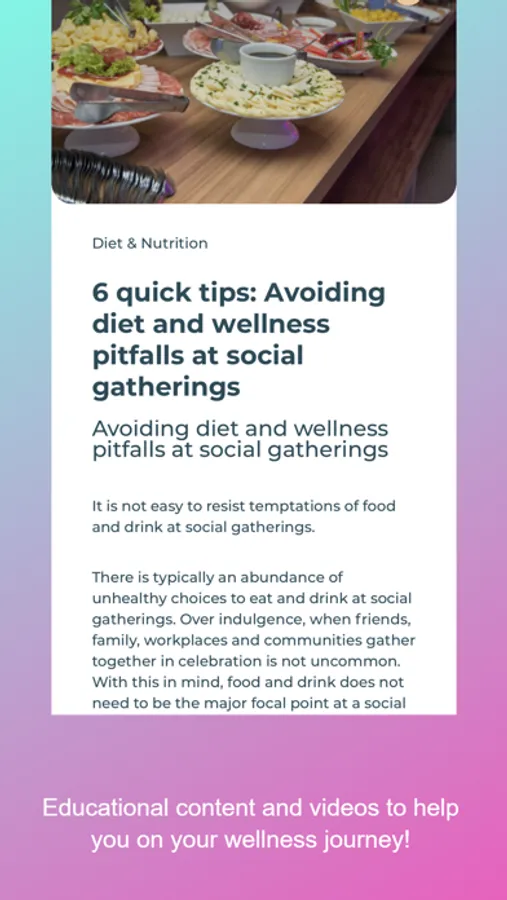 A plan tailored for you and designed by medical experts. Our program focuses on more than just numbers on a scale, we focus on all of you - mind, body, and soul. Download the app for free and complete a small assessment. Based on your assessment, we deliver AI driven meal plans for weight loss and a healthy lifestyle as well as a fitness and weight training program that is perfect for your body type and mobility.