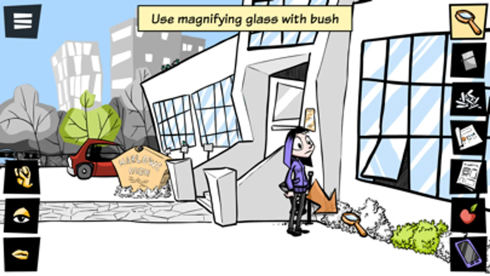 Fully hand-drawn and -animated, Dawn, P.I. will transport you to a cartoon noir world, where you'll have to be sharp and creative to advance in every step. Sweep rooms for objects to help you on your investigation and interrogate everyone to uncover their hidden secrets.