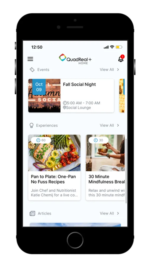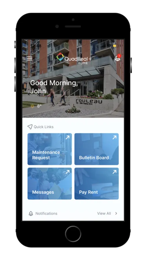 The QuadReal+ Home app provides residents with a digital tool to manage all needs in their apartment. We have built the app to provide our residents with access to all building information and tools within the palm of your hand. Whether you are looking to make a maintenance request, book an elevator or communicate with your community team- we have you covered. Our mobile app provides you with an easy to use platform to manage your residence digitally, making your living experience more accessible from wherever you are. Register today with your phone number or email and start your journey with QuadReal+ Home today.