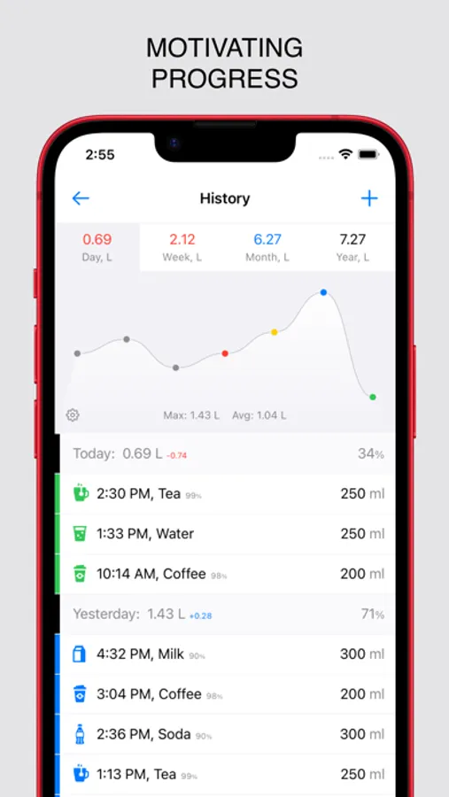 Visualize your water balance in a motivating application that will remind you to stay hydrated and track your progress by days, weeks, months, and years. Enjoy the flexibility of a drink editor and sync your data with Health and iCloud. Apple Watch support makes accessing the app effortless. Set your goals and monitor your results!