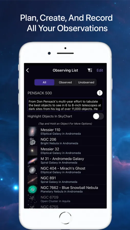 + Improved Observation Tools - SkySafari is the perfect tool to help you plan, record and organize your observations. New workflows make it easier to add, search, filter and sort data.