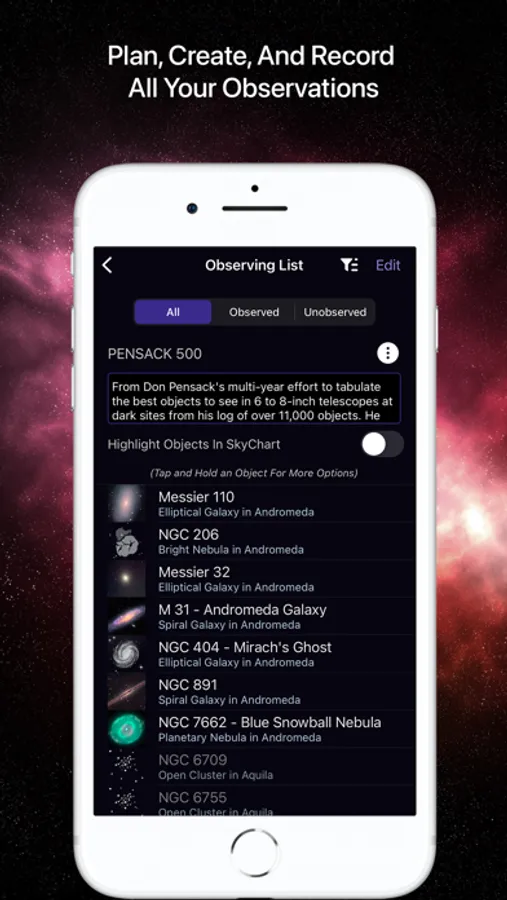 + Improved Observation Tools - SkySafari is the perfect tool to help you plan, record and organize your observations. New workflows make it easier to add, search, filter and sort data.