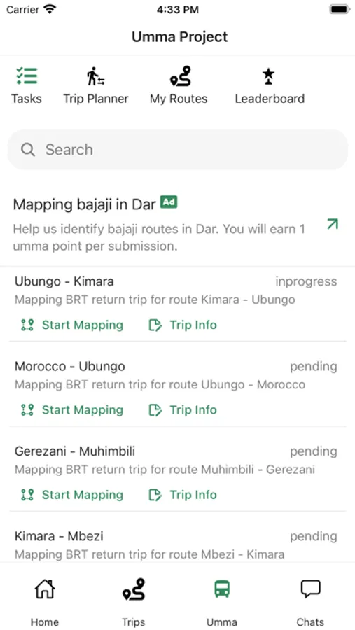 Records your trip and enter details like vehicle type, waypoints and count of riders alighting and boarding at each stop etc. Then view analytics for that track or download the data as GPX, KML, JSON or CSV files for further analysis on other tools like Google maps, Google Earth, Moovit, ArcGIS, Geo Tracker etc.