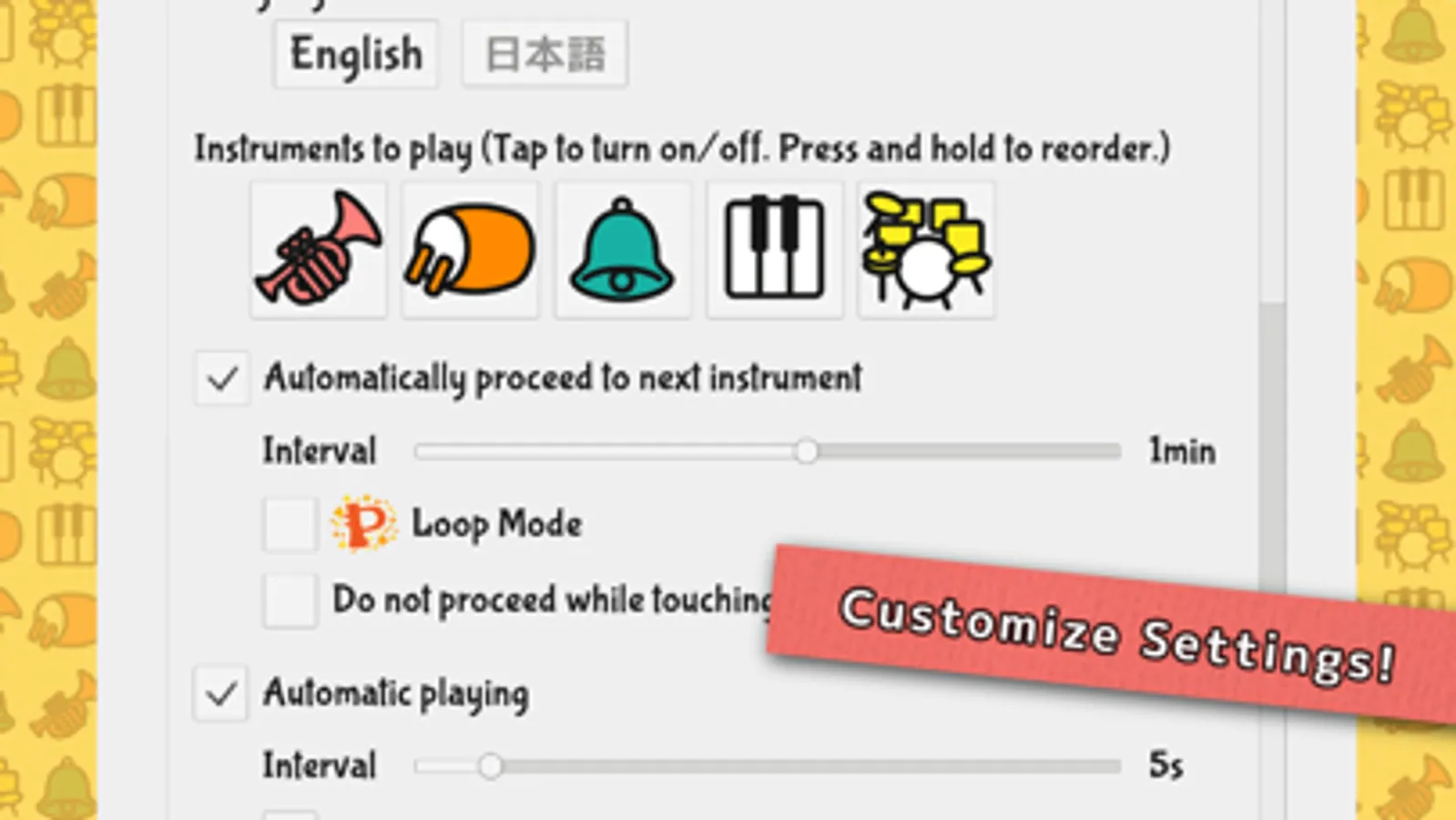 Customize the order of instruments and timing of the auto-play according to your baby’s liking!