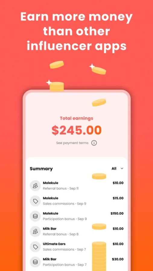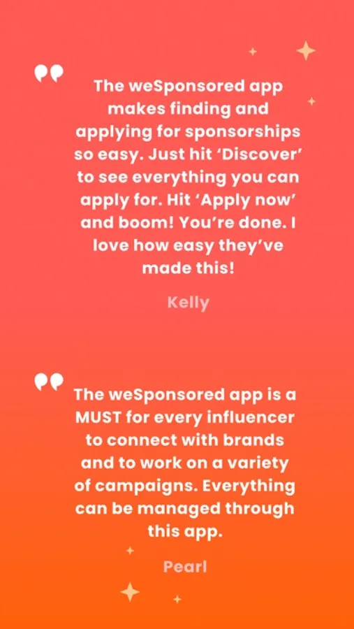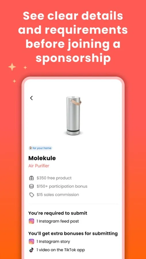 You will see clear details and requirements before joining a sponsorship, and will submit all your content right in the app. No more back and forth with brands. Create sponsored Instagram stories, feed posts, reels, videos on the TikTok app, and more.