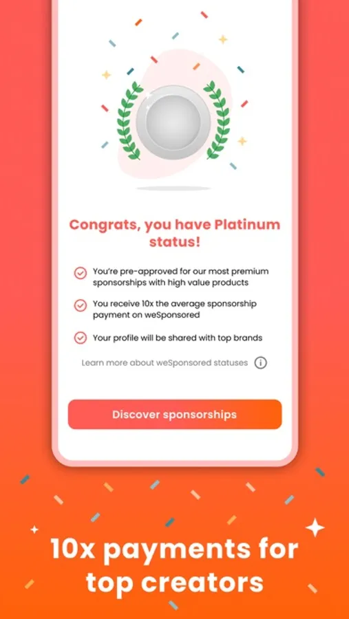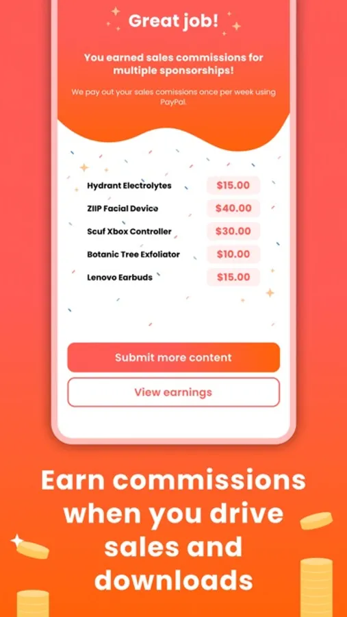 Get paid for creating content on your social media platform. Earn extra commissions for generating sales for the products you are working with. Refer friends to the app and earn more. You can track all of the money you earn from weSponsored in your Earnings page in the app.
