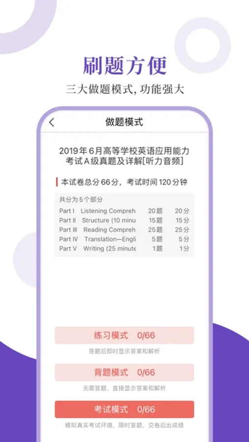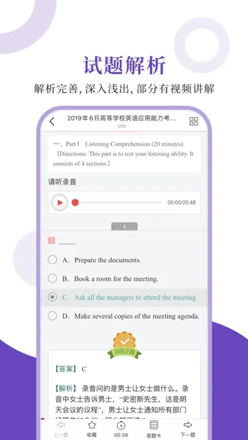 专为高等学校英语应用能力考试(简称PRETCO)精心准备的考试配套题库,每一道试题都有答案解析,为考试提供了充分的复习准备,可随时随地学习练习,支持手机、平板多端同时使用。