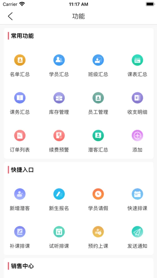 我们为培训学校提供招生营销、日常课务管理系统,比如排课、消课、老师点名、家端收到上课通知、课时消耗记录等功能服务
