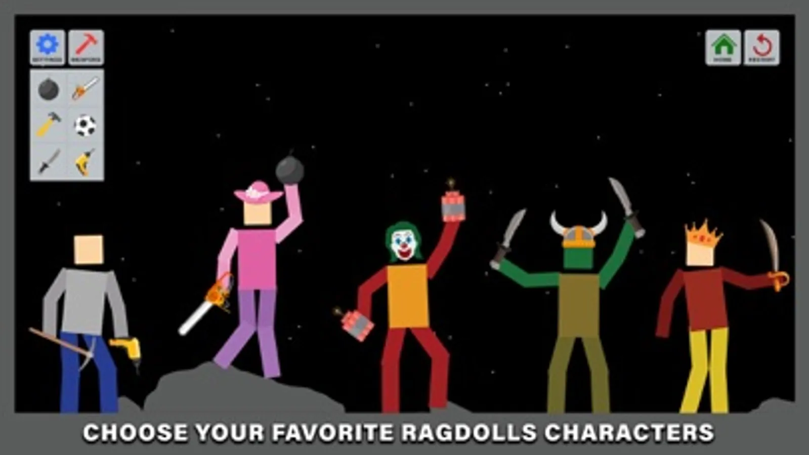 - Brand new Game with cool colorful graphics and realistic Ragdoll physics.
