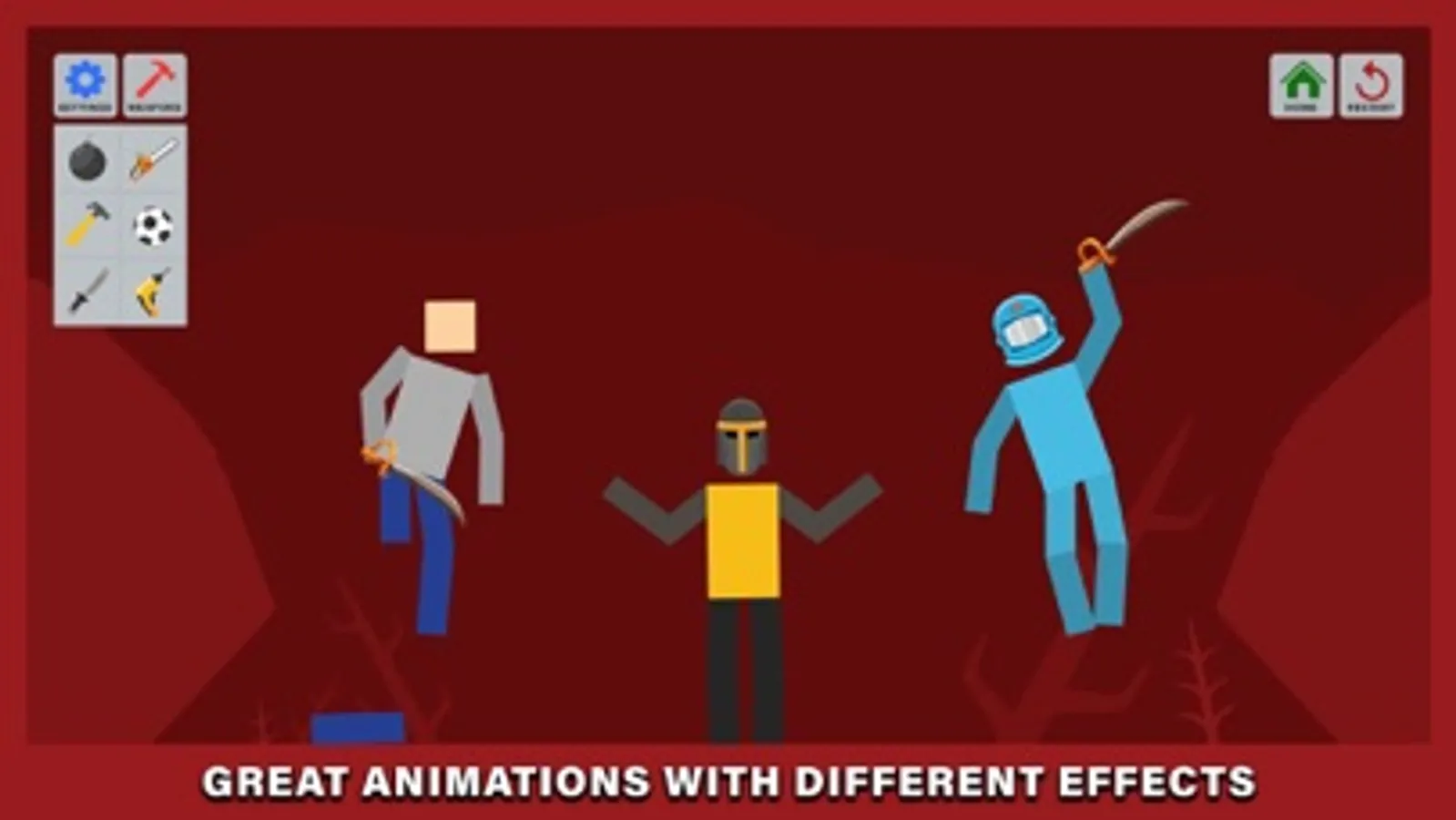 You can choose from a lot of elements and characters, even being able to set up a perfect stage for your characters to mutilate in the fun way possible.