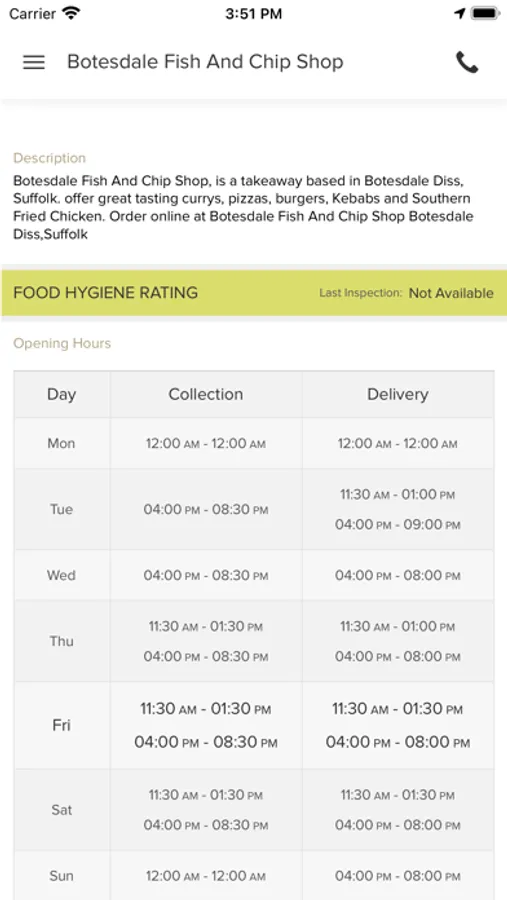 Order food online in Botesdale! It's so easy to use and it is fast and convenient. Book a time to collect your order and it will be ready when you come to pick it up.