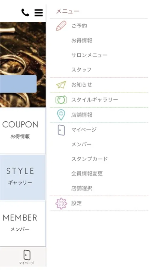 ▼マイページ機能で来店履歴や予約履歴がポイント保有数が確認できます。